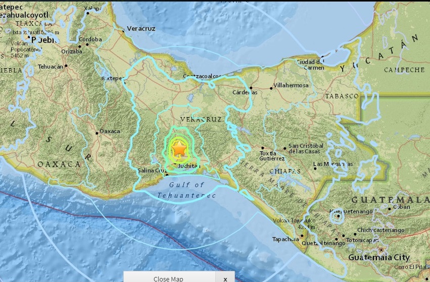 Новое землетрясение магнитудой 6,1 сотрясло Мексику. По данным геологической службы США, толчки произошли в 18 км к юго-востоку от Матиаса Ромеро в южном штате Оахака.