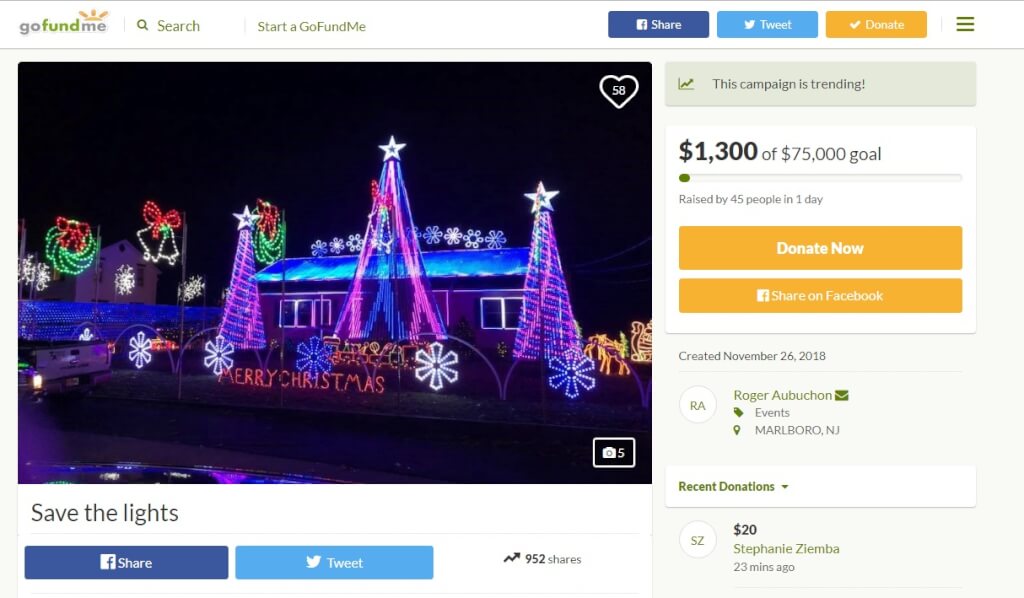 Томас и Крис Апруцци из Old Bridge более десятилетия создавали рождественские инсталляции. В 2014 году их показали в Great Christmas Light Fight по ABC. Кроме довольных посетителей, семья занималась сбором денег на благотворительность, но в этом году поселок, в котором проживает пара, потребовал заплатить кругленькую сумму за безопасность — или шоу больше не будет.