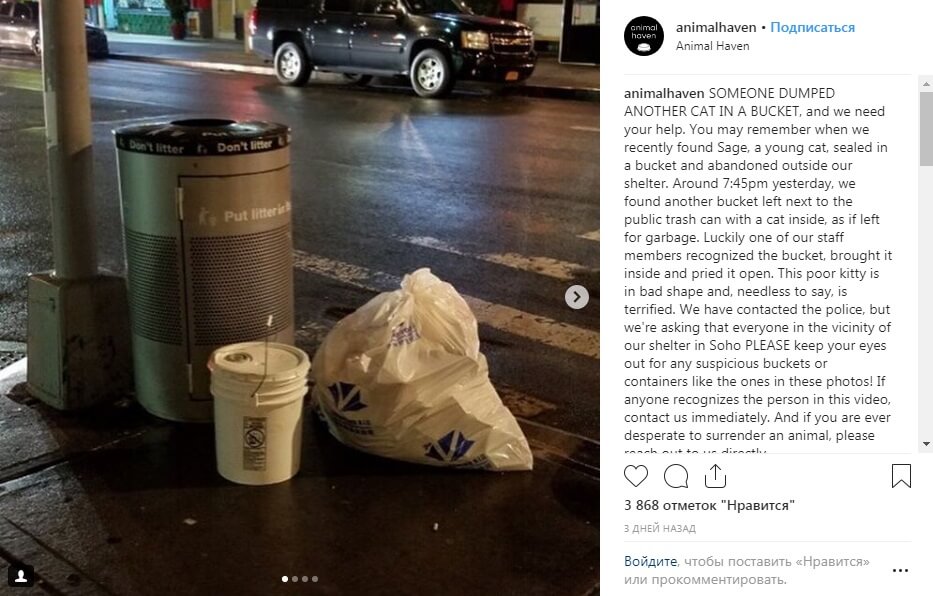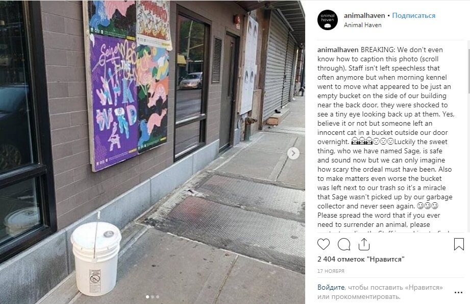 Непонятно, оставляли ли животных с надеждой, что их заметят. Работники Animal Haven сказали, что ведра стояли в местах, где на них не обратил бы внимание случайный прохожий.