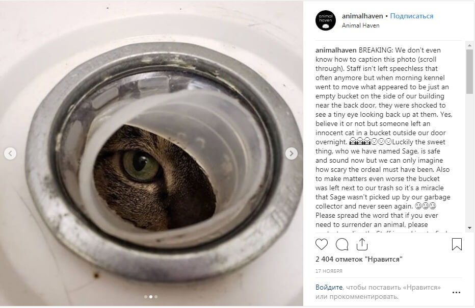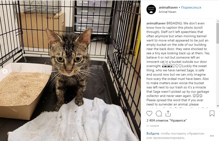 В первом случае сотрудники приюта заметили, что из ведра на них смотрит кошачий глаз. Во втором случае сотрудники нашли еще одного кота, у которого были явные проблемы со здоровьем.
