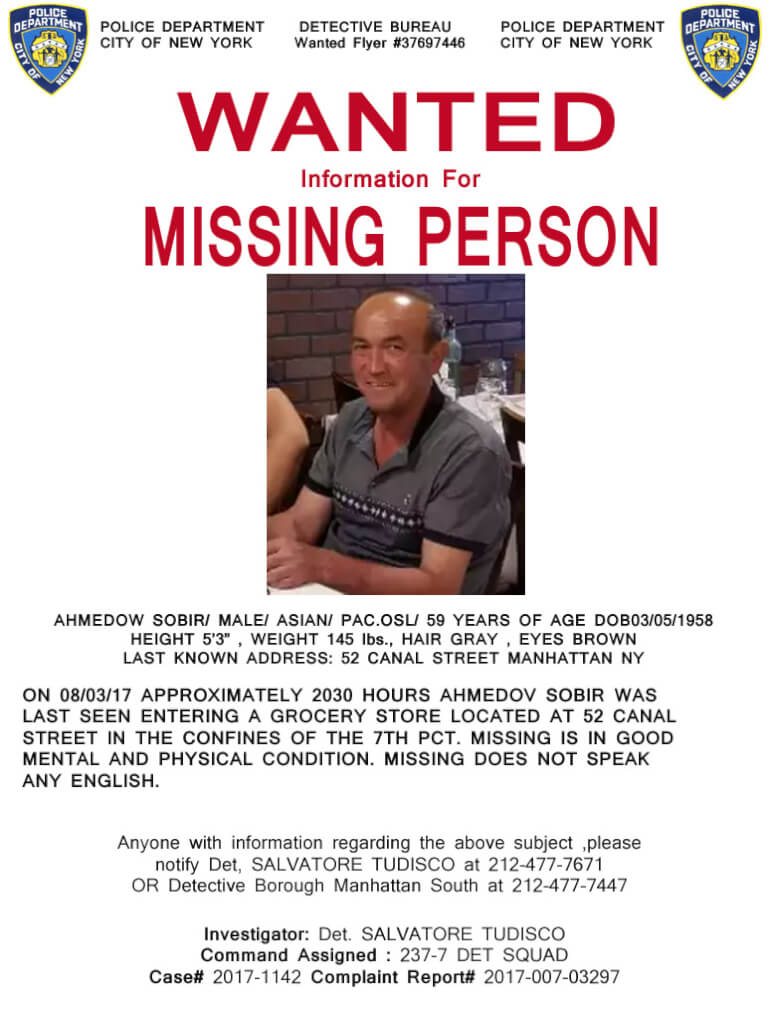 Ахмедов Собир объявлен в официальный розыск в Нью-Йорке, полиция все еще разыскивает его.