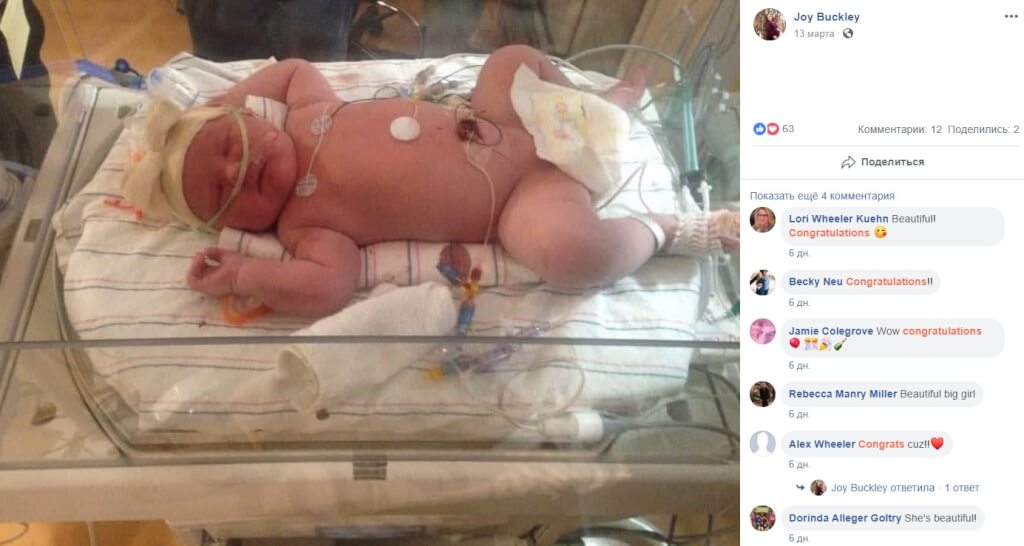 В Нью-Йорке родился самый тяжелый ребенок в истории штата. ФОТО