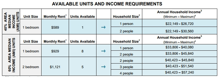 Чтобы претендовать на одну из доступных квартир, вы должны иметь годовой доход от $22 149 до $57 240.