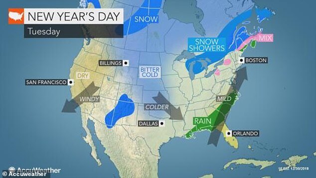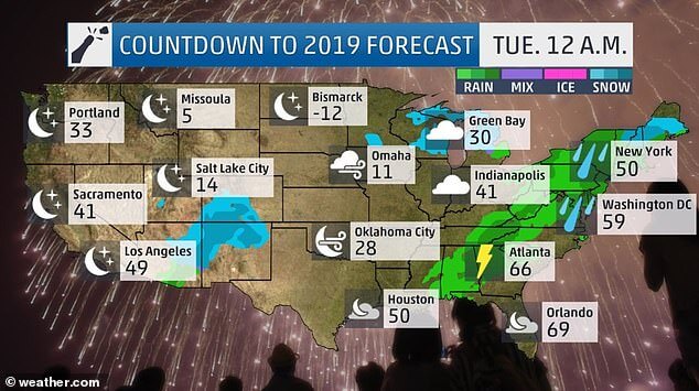 «В соответствии с темой 2018 года последние часы года на северо-востоке будут дождливыми, — сказал Fox News метеоролог AccuWeather Джефф Корниш. — К сожалению, дождь распространится и на Таймс-сквер».