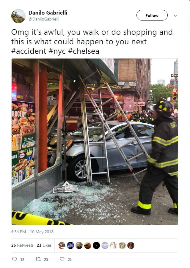 Автомобиль врезался в продуктовый магазин на углу Манхэттена в четверг вечером, 10 мая, ранив пять человек.