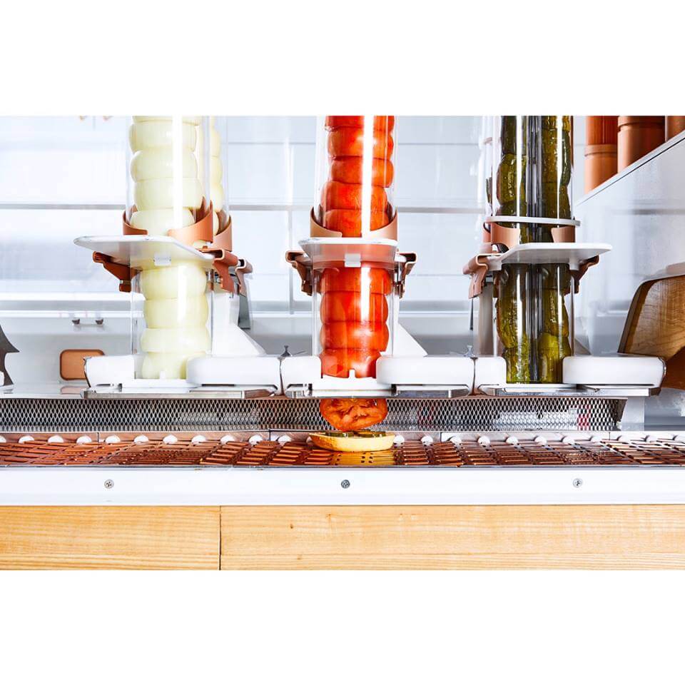 «В отличие от человека, робот добавляет всю начинку в бургер так, что он не разваливается, когда вы берете его в руки», – говорит Вардакостас. Практически весь процесс, кроме измельчения и приготовления мяса, видно сквозь стеклянную стену.