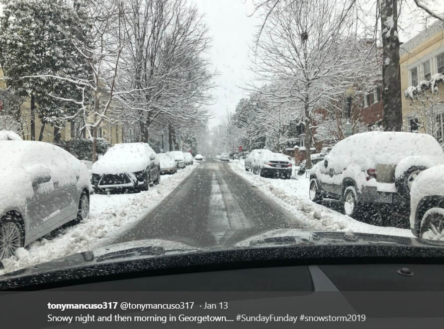 Но всех их ждал грандиозный финал в конце дня — эпицентр снежной бури расположился прямо над районом округа Колумбия и добавил еще 2-6 дюймов (5-15 см) снега в разных районах. Дорожные условия снова быстро ухудшились, и у большинства школ (и федерального правительства) не было иного выбора, кроме как взять выходной в понедельник.