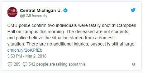 If you’re on the CMU campus please stay inside! Stay safe everyone. This is terrifying to wake up to. pic.twitter.com/xImaUfDdIA