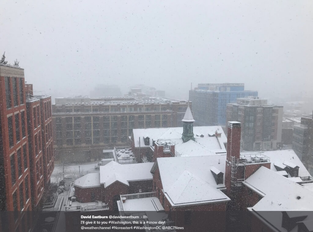 В Вашингтоне идет самый сильный весенний снегопад за 50 лет