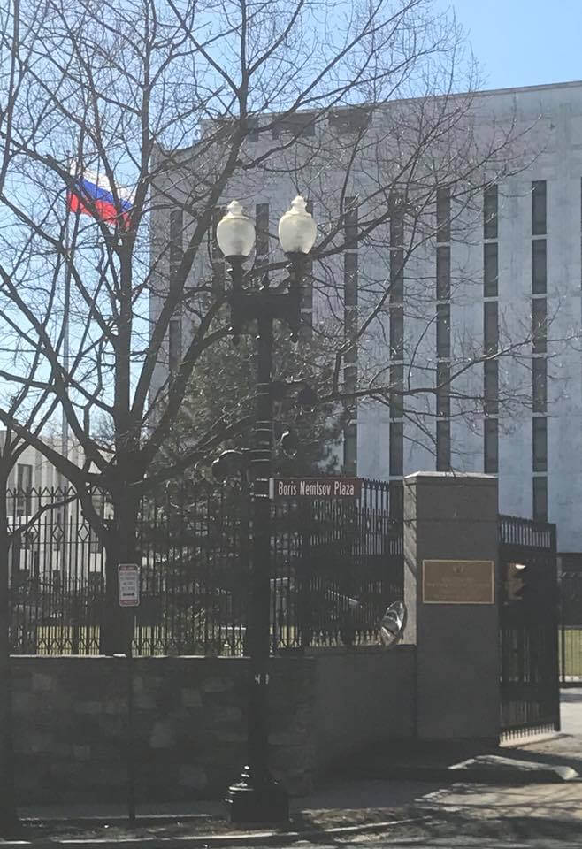 В третью годовщину убийства российского оппозиционного политика Бориса Немцова перед посольством России в Вашингтоне официально появилась площадь, названная в его честь.