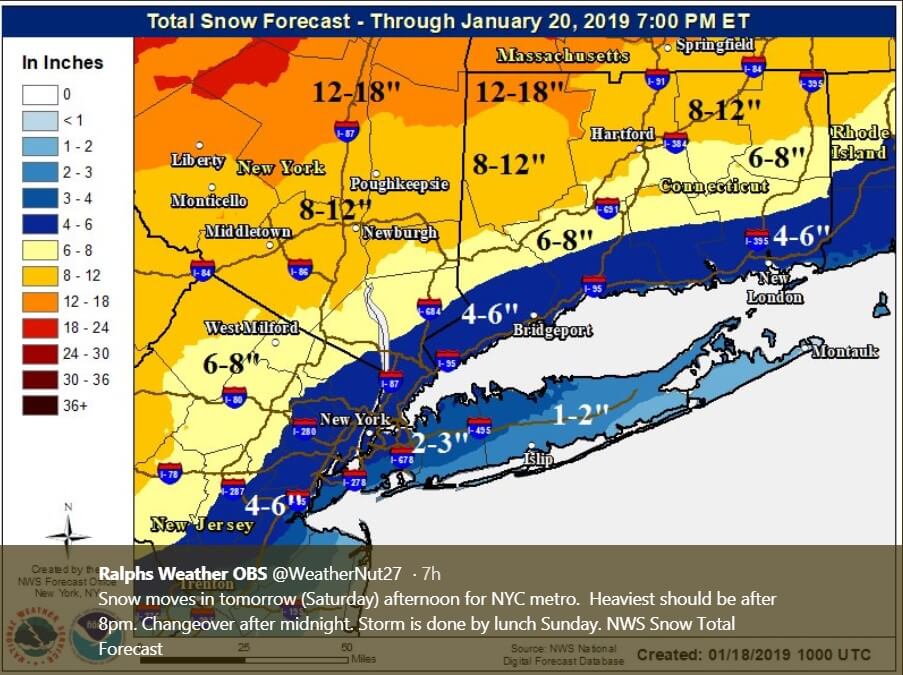 Принимая во внимание природу шторма, синоптики говорят, что прогнозирование точного объема осадков остается проблемой не только для пригородов, но и для самого Нью-Йорка. По последним данным, самый сильный снег выпадет к северу и западу от города; в некоторых районах округа Салливан может наблюдаться от 18 до 24 дюймов (46-61 см) снега, в то время как в локациях от Рамапо до Ньюбурга ожидается от 8 дюймов (20 см) до полутора футов (46 см), сообщает Storm Team 4.