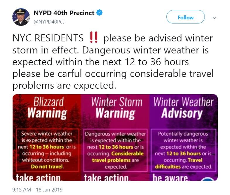 Шторм, предположительно, накроет район трех штатов — повсюду выпущены специальные предупреждения. Метеорологи ожидают до 2 футов (более 60 сантиметров) снега в некоторых районах, пишет NBC New York. Вы можете проверить статус штормового предупреждения по вашему району по этой ссылке.