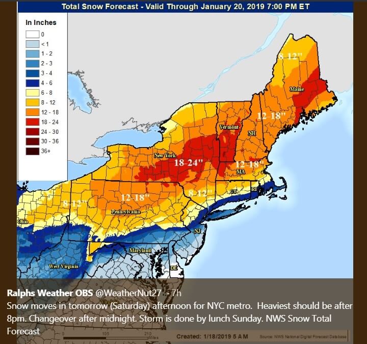 Принимая во внимание природу шторма, синоптики говорят, что прогнозирование точного объема осадков остается проблемой не только для пригородов, но и для самого Нью-Йорка. По последним данным, самый сильный снег выпадет к северу и западу от города; в некоторых районах округа Салливан может наблюдаться от 18 до 24 дюймов (46-61 см) снега, в то время как в локациях от Рамапо до Ньюбурга ожидается от 8 дюймов (20 см) до полутора футов (46 см), сообщает Storm Team 4.