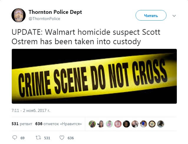 Его схватили менее чем через два часа после того, как полиция в Торнтоне, штат Колорадо, идентифицировала подозреваемого как 47-летнего Скотта Острема и выдала ордер на арест.