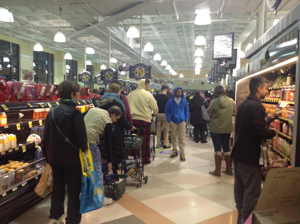 Готовятся к снежной буре и вашингтонцы. В магазинах ажиотаж. Больше всего спросом пользуются лопаты и соль. Также покупают запасы продуктов на несколько дней. В некоторых супермаркетах пустые полки, к кассам – многометровые очереди.
