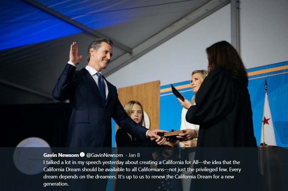 Калифорния неоднократно называла себя штатом-флагманом сопротивления политике Трампа. Ньюсом, который всего лишь месяц назад занял пост губернатора, считает, что штат является своего рода противоядием от того, что он охарактеризовал как «коррумпированный Вашингтон», — послание, которое Ньюсом, скорее всего, попытается передать в своей речи о состоянии штата во вторник.