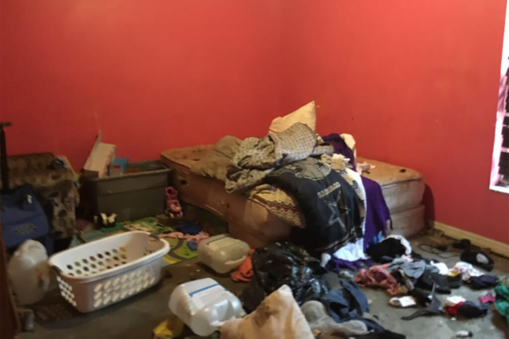 В доме не было еды, воды и электричества. Дети спали на голых матрасах на полу, покрытом собачьими фекалиями.