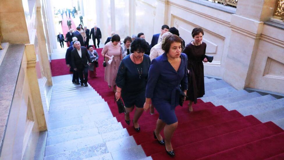 Корреспонденту Русской службы Би-би-си Петру Козлову удалось заснять момент последних приготовлений к появлению во дворце избранного президента.