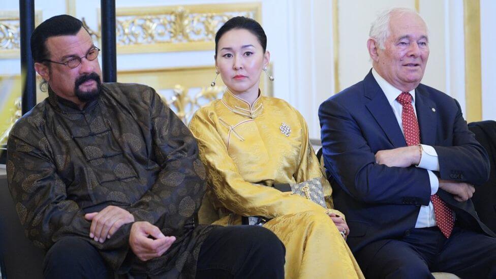 ктер Стивен Сигал с супругой Эрденетуей Батсух и директором НИИ неотложной детской хирургии и травматологии Леонидом Рошалем.