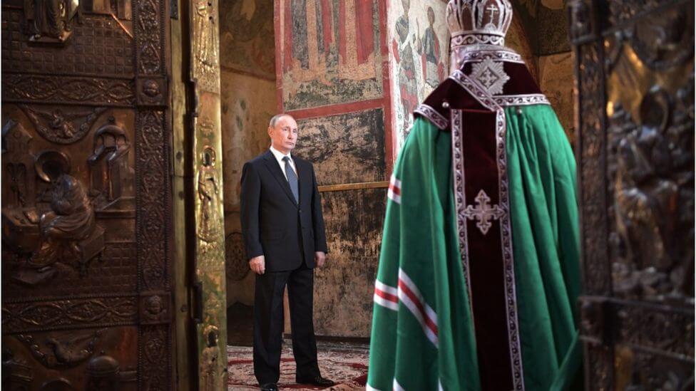 После церемонии инаугурации Путин по традиции направился на службу в Благовещенский собор Кремля. Благодарственный молебен совершил патриарх Московский и всея Руси Кирилл. Эта часть в прямую трансляцию телеканалов не вошла.