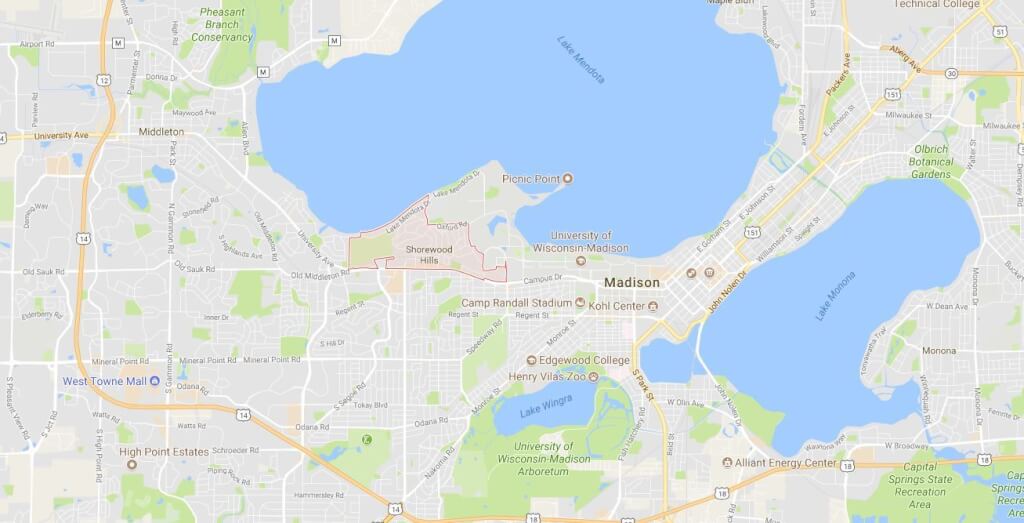В городе Мэдисон есть очень хороший район под названием Shorewood Hills.