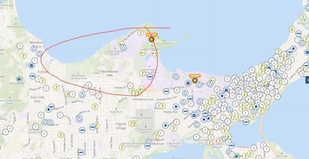 В этом районе живу я. Это западная часть города. Дома достаточно дорогие, но несколько дешевле, чем в Shorewood Hills. Интересная особенность: в Штатах тротуар есть не везде, считается, что если человеку куда-то надо, то он должен пользоваться машиной.