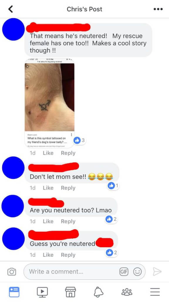 Друзья и знакомые Мендиолы начали подтрунивать над ним в комментариях в Фейсбуке. Некоторые спрашивали, не кастрирован ли Крис, другие советовали не показывать татуировку маме.
