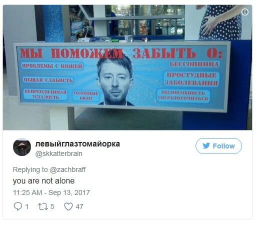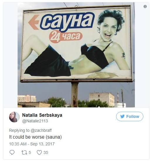 В своем Тwitter он опубликовал фото объявления на русском языке, где предлагает «восстановить мужскую силу» в Саратове, Россия.