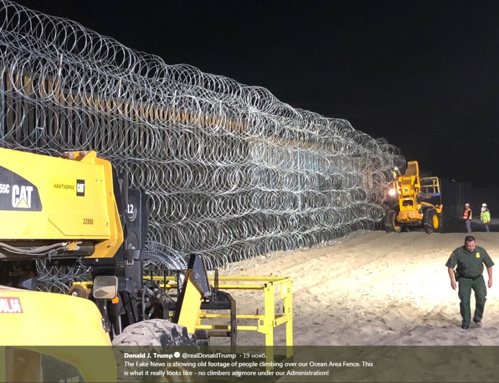 Около 5800 американских военнослужащих проводят День благодарения на границе с Мексикой, натягивая колючую проволоку и строя палаточные лагеря. Размещение войск на границе вызвало споры о возможном нарушении закона 130-летней давности, запрещающего привлекать военнослужащих к правоохранительной деятельности внутри страны.