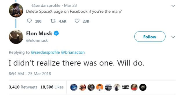 Удалишь страницу SpaceX c Фейсбука, если ты настоящий мужчина?» — спросил пользователь Твиттера.
