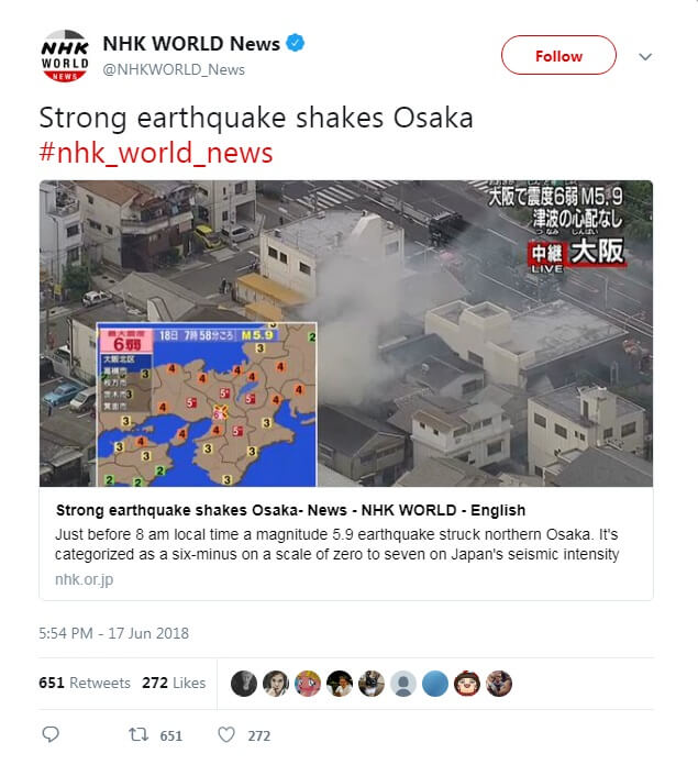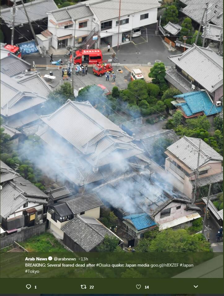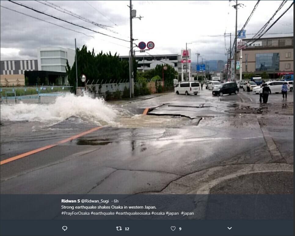 Strong earthquake shakes Osaka in western Japan#earthquake #earthquakeosaka #osaka #japan #sismo #temblor #terremoto #japao @NewsKali pic.twitter.com/OhNu7KonNT