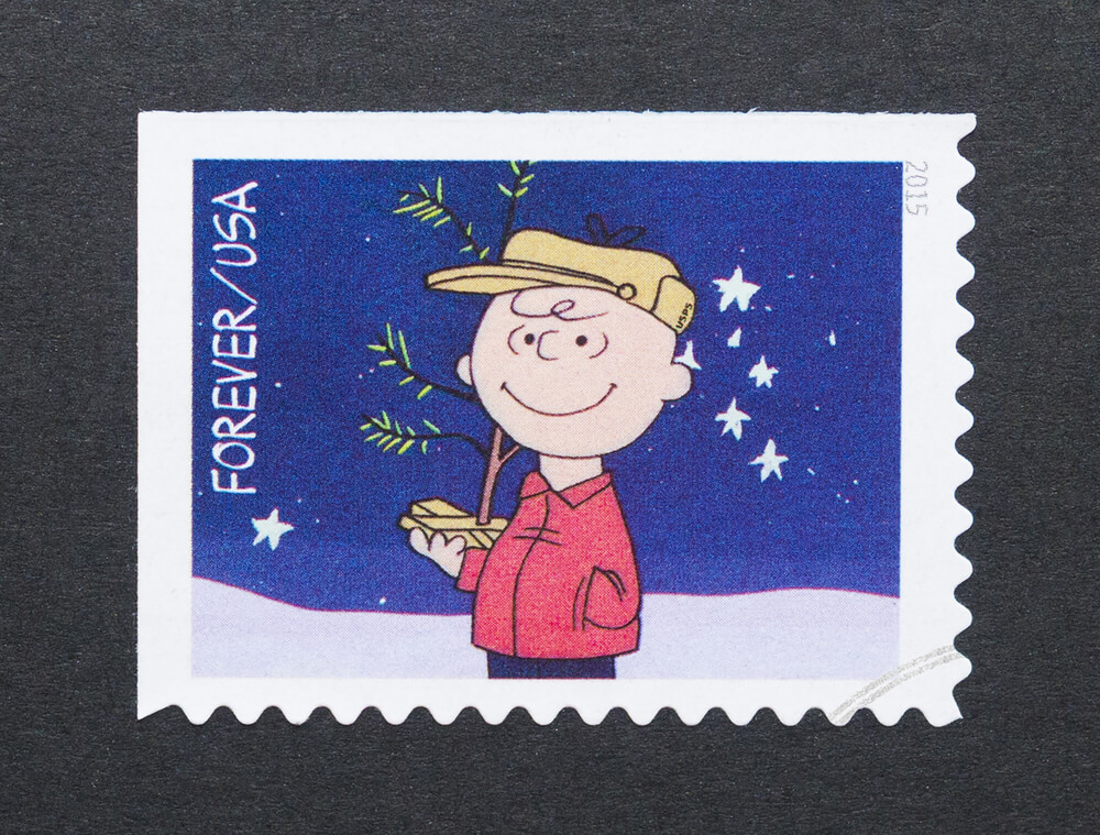 Почтовая марка с иллюстрацией «Рождество Чарли Брауна». Фото: Shutterstock